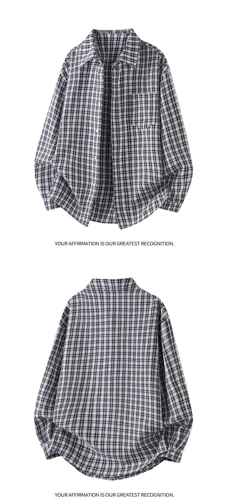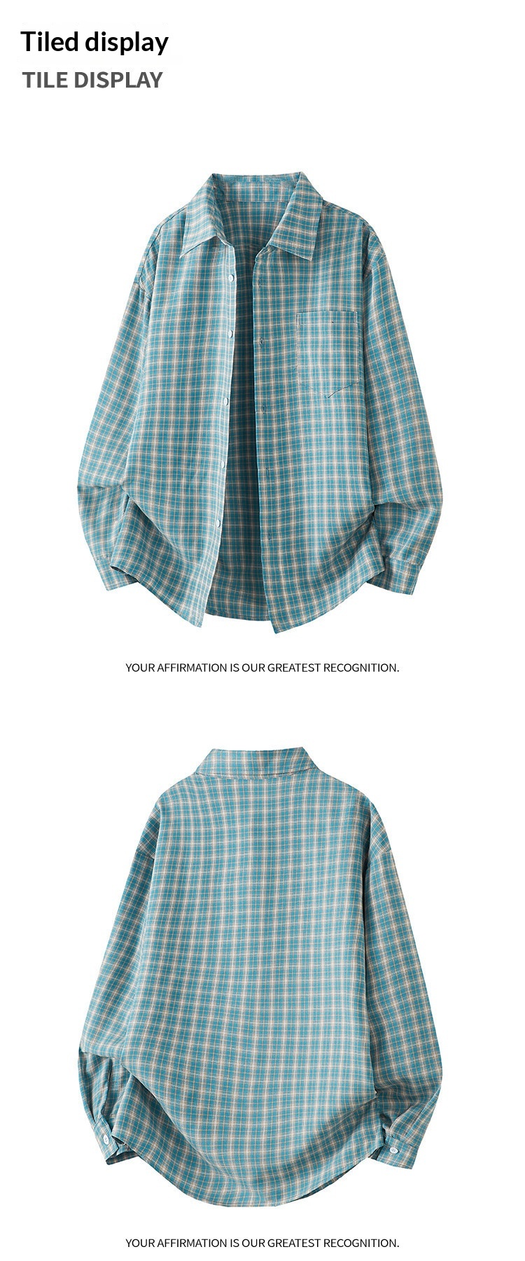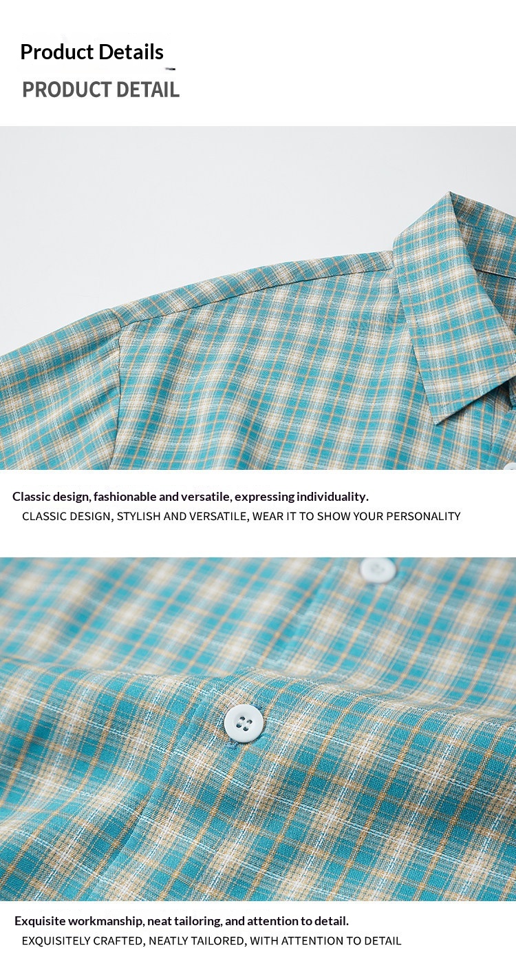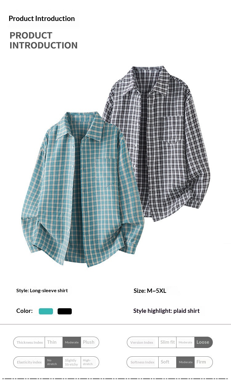 Mens Fashion Plus-Size Long-Sleeve Plaid Casual Shirt