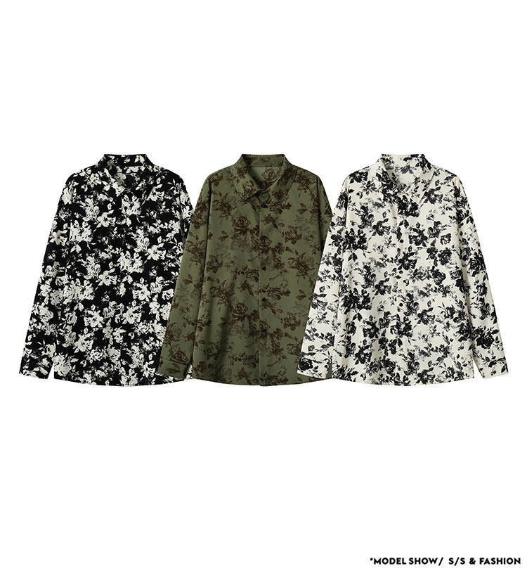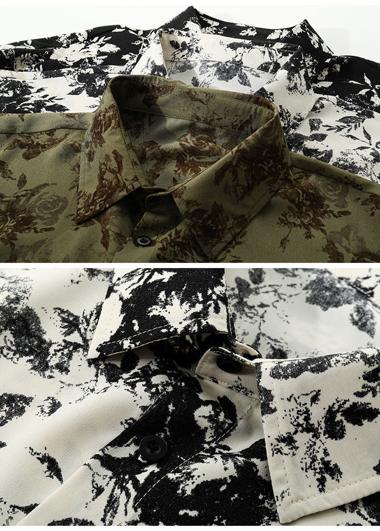 Mens Ice Silk Printed Long-Sleeve Shirt