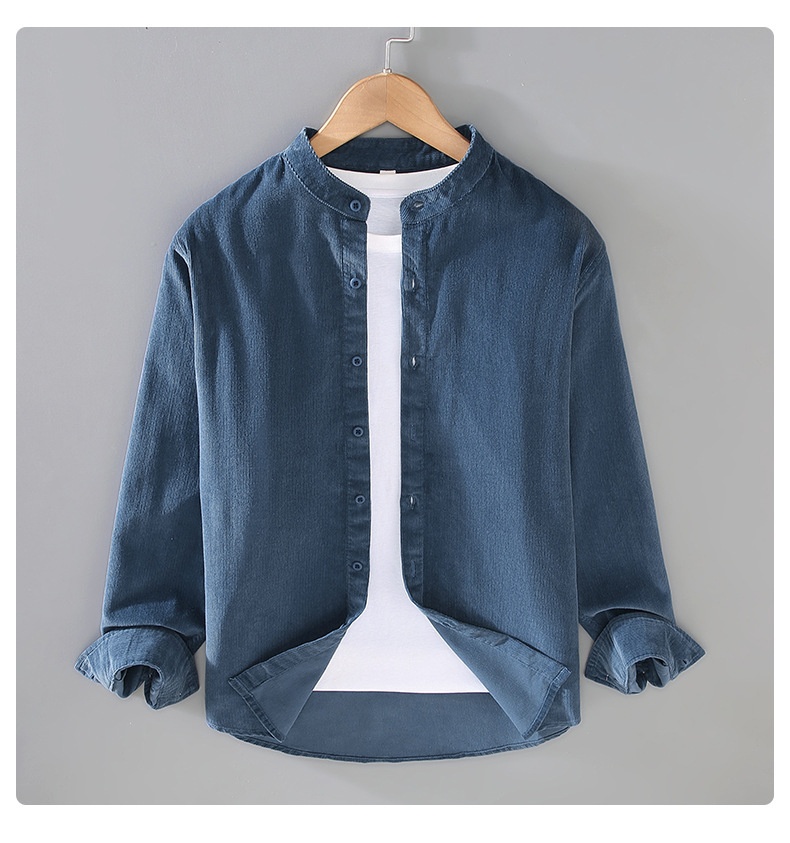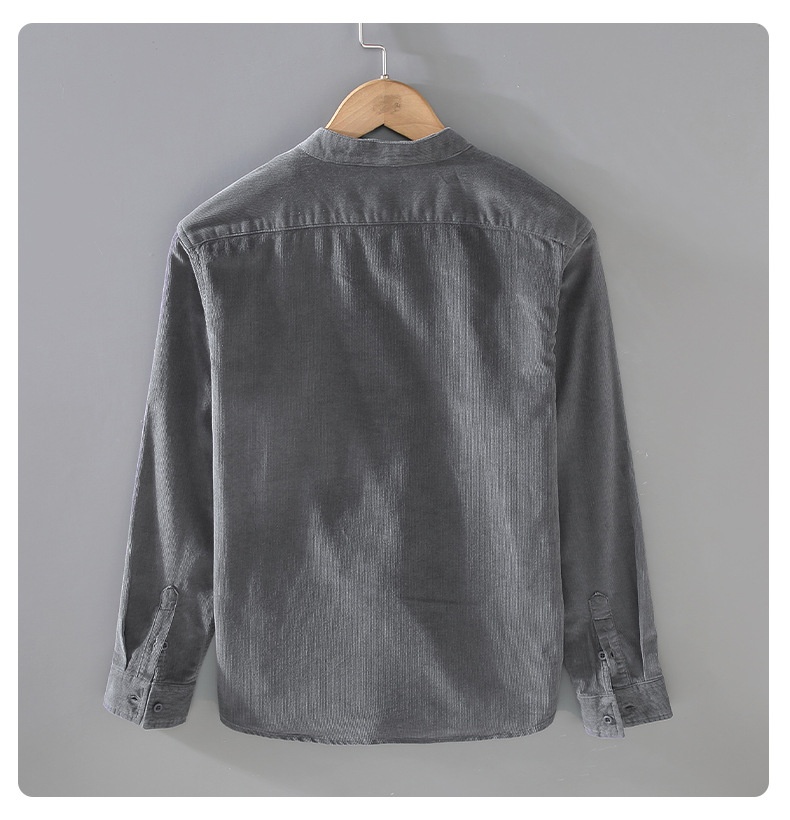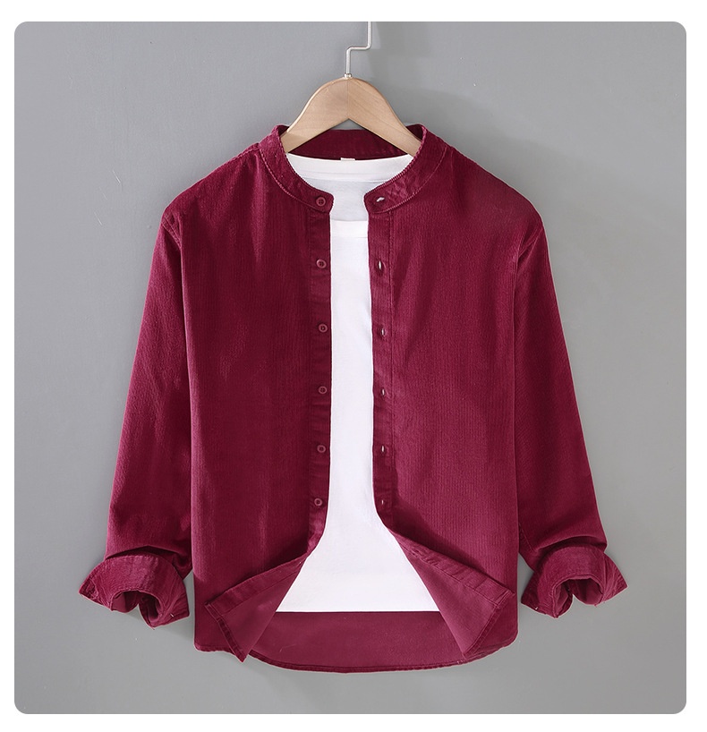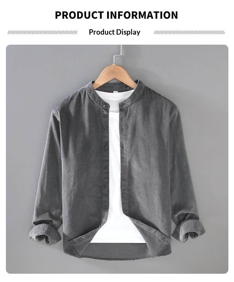 Mens Retro Corduroy Small Stand-Up Collar Shirt Jacket
